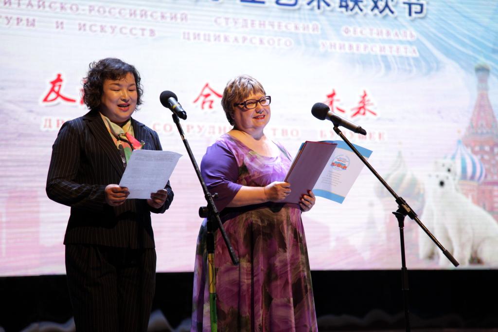 第九屆中俄大學(xué)生藝術(shù)聯(lián)歡節(jié)由教育部、黑龍江省教育廳共同主辦,齊齊哈爾大學(xué)承辦,俄羅斯國立人文技術(shù)大學(xué)副校長葉戈洛娃女士,俄羅斯國立人文技術(shù)大學(xué)社會經(jīng)濟系主任科拉內(nèi)莎娃女士,后貝加爾國立大學(xué)波歌達舍娃女士,黑龍江省外事辦公室處長銀掃塵,齊齊哈爾市市委宣傳部副部長畢肅生,齊齊哈爾醫(yī)學(xué)院副校長張曉杰,我校領(lǐng)導(dǎo)蘭景力、陳桂芝、齊宏偉、王剛、李英杰、姜國慶、張樹軍,省內(nèi)兄弟院校的領(lǐng)導(dǎo)老師以及齊齊哈爾市市委、市政府有關(guān)委辦局領(lǐng)導(dǎo)出席開幕式并觀看演出。我校有關(guān)部門、國際教育學(xué)院、教育與傳媒學(xué)院、音樂與舞蹈學(xué)院等學(xué)院領(lǐng)導(dǎo)、老師、學(xué)生,來自俄羅斯國立人文技術(shù)大學(xué)、俄羅斯后貝加爾國立大學(xué)的師生以及我校的俄羅斯留學(xué)生參加了聯(lián)歡節(jié)。