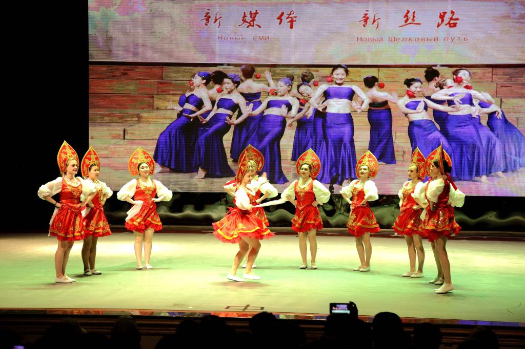 在文藝演出中,中外學(xué)生表演了由俄羅斯著名民歌改編的舞蹈《卡林卡》、舞蹈《俄羅斯》、女子合唱《茶山云霧》、《想你的365天》、舞蹈《失去控制》、歌曲《騎著馬兒去草原》、詩朗誦《愚蠢的人們》、雙人舞《只為途中與你相遇》、歌伴舞《絨花》、二胡齊奏《新賽馬》、歌伴舞《誰不說俺家鄉(xiāng)好》、群舞《且吟春語》、詩朗誦《讀中國》、舞蹈《在草地》、經(jīng)典歌曲《這里的黎明靜悄悄》、舞蹈《巴黎時裝》等精彩節(jié)目。