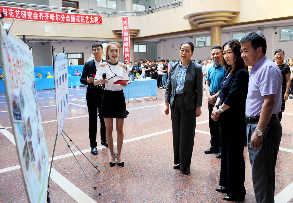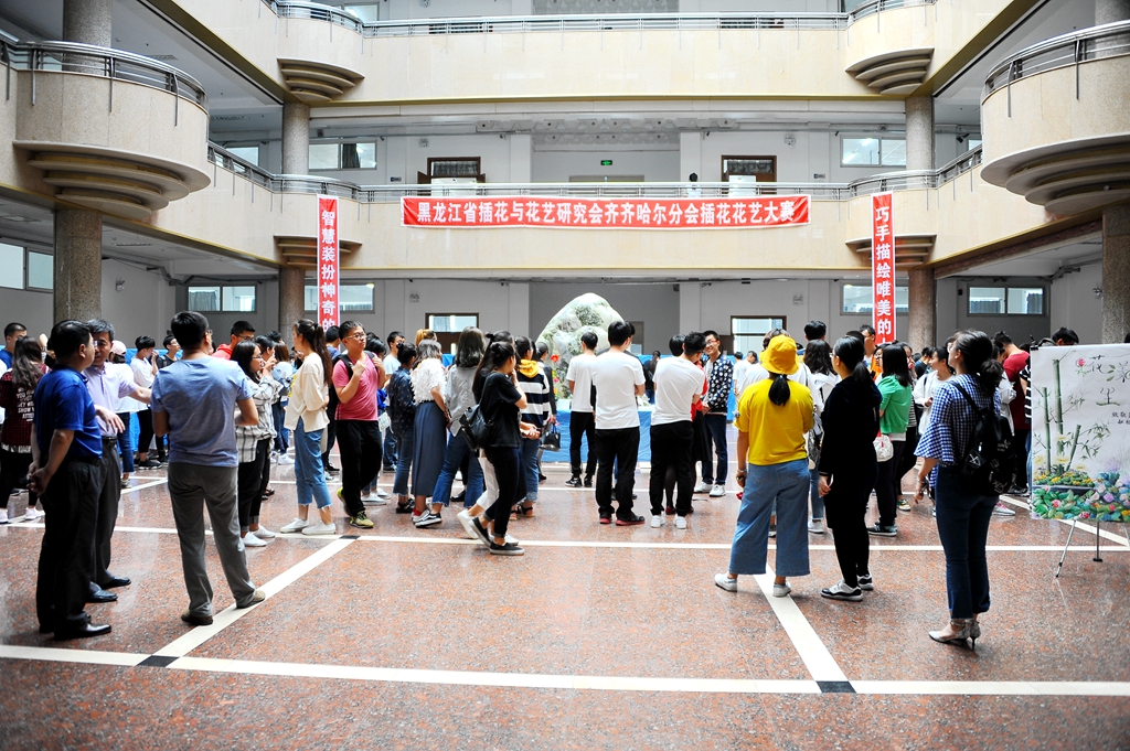 智慧裝扮神奇的花卉藝術(shù)、巧手描繪唯美的七彩畫卷。為進(jìn)一步推進(jìn)齊齊哈爾地區(qū)插花與花藝研究,促進(jìn)本地區(qū)各相關(guān)院校、企事業(yè)單位相關(guān)人員經(jīng)驗(yàn)與技術(shù)交流,6月6日下午,黑龍江省插花花藝研究會(huì)齊齊哈爾分會(huì)第八屆插花花藝大賽在我校西區(qū)主樓一樓陽光大廳隆重舉辦。共有來自齊齊哈爾大學(xué)、齊齊哈爾工程學(xué)院、齊齊哈爾醫(yī)學(xué)院三所高校的125名學(xué)生參加了本次比賽。