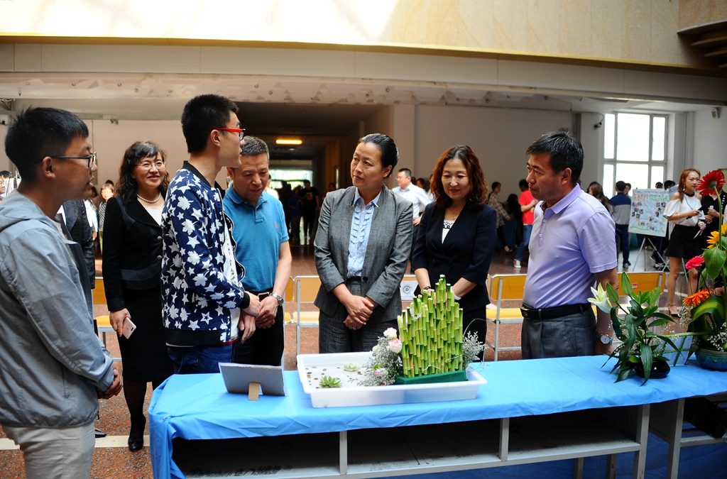 校長陳桂芝、校黨委副書記齊宏偉、副校長李英杰到現(xiàn)場觀看作品,聽取參賽學(xué)生關(guān)于插花作品創(chuàng)意的說明,并給予鼓勵(lì)。校團(tuán)委書記蘇醒,教務(wù)處處長陶佰睿、副處長祝光,生命科學(xué)與農(nóng)林學(xué)院領(lǐng)導(dǎo)班子成員以及園林系師生觀看了比賽。