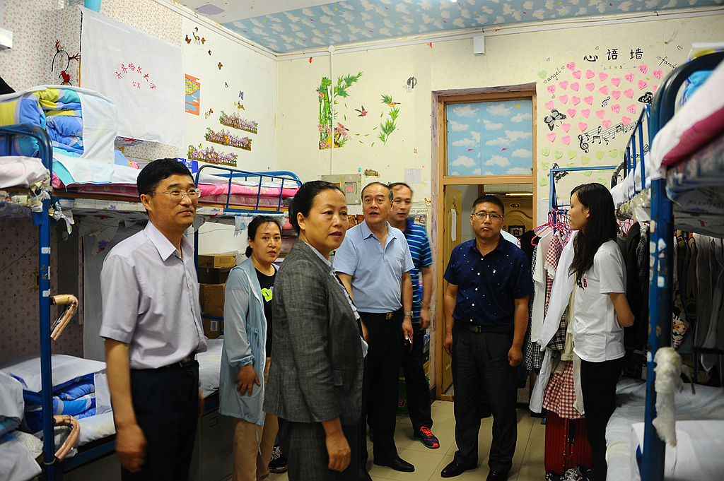 陳桂芝一行還先后來(lái)到學(xué)生宿舍7號(hào)樓和13號(hào)樓,實(shí)地查看了學(xué)生宿舍的情況。在建成時(shí)間較長(zhǎng)、條件相對(duì)較差的7號(hào)宿舍樓,陳桂芝仔細(xì)查看學(xué)生的寢室、盥洗室和衛(wèi)生間,詳細(xì)詢問(wèn)了消防安全等保障措施,與宿舍管理員進(jìn)行了交流。