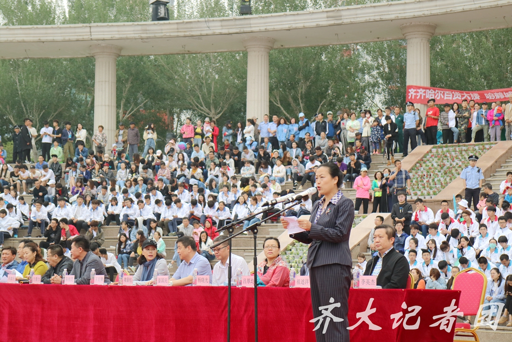 陳桂芝在開幕式上致辭,她首先代表齊齊哈爾大學3萬余名師生,向蒞臨賽場的各位領導、來賓、市民和廣大師生致以節(jié)日的祝福,并祝參賽的選手們取得好成績!