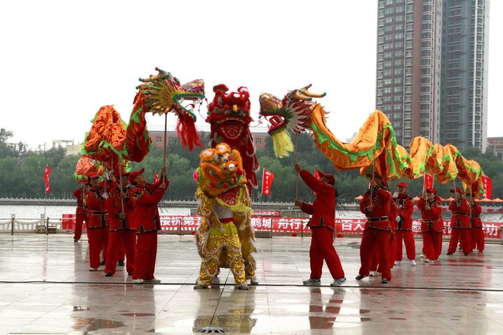 由齊齊哈爾市民帶來的舞龍舞獅表演,慷慨激昂,粗獷豪放,展示了中華兒女在中國共產(chǎn)黨領導下頂天立地、威武雄壯、不屈不撓、英勇頑強的民族性格,象征著風調雨順國泰民安,中華民族的偉大復興勢不可擋,勇往直前。