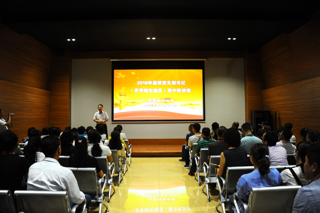 為深入學(xué)習(xí)宣傳貫徹習(xí)近平新時代中國特色社會主義思想和黨的十九大精神,深入推進(jìn)高校黨支部書記“三推兩強”工程,根據(jù)中央和省委關(guān)于基層黨組織書記培訓(xùn)工作有關(guān)要求,6月19日上午,黑龍江省2018年高校黨支部書記集中輪訓(xùn)班(齊齊哈爾地區(qū))開班儀式在我校德潤大廈四樓會議室舉行,來自齊齊哈爾大學(xué)、齊齊哈爾醫(yī)學(xué)院、齊齊哈爾工程學(xué)院、齊齊哈爾高等師范??茖W(xué)校、黑龍江交通職業(yè)技術(shù)學(xué)院、齊齊哈爾理工職業(yè)學(xué)院等在齊齊哈爾市辦學(xué)的6所高校教工黨支部書記參加了開班儀式。開班儀式由校黨委組織部副處級組織員徐海祥主持。