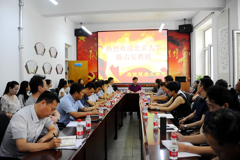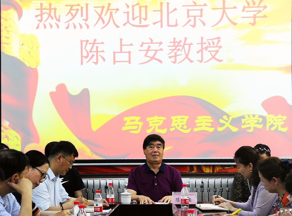 6月22日,我國知名馬克思主義理論專家、北京大學(xué)馬克思主義學(xué)院原院長陳占安教授應(yīng)邀來到我校作了題為《大力推進(jìn)新時(shí)代高校思想政治理論課三大建設(shè):課程、學(xué)科、學(xué)院》的專題報(bào)告。校黨委副書記齊宏偉出席報(bào)告會,我校50余名師生參加了報(bào)告會。報(bào)告會由馬克思主義學(xué)院副院長王圣禎主持。