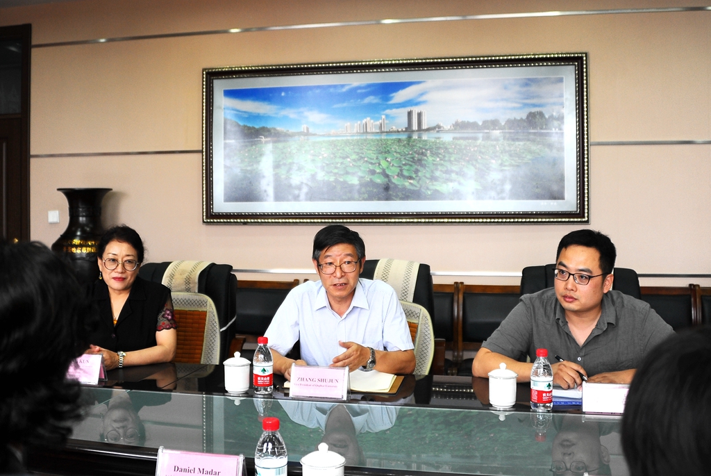 7月16日下午,美國駐沈陽總領(lǐng)事館文化副領(lǐng)事梅孟達、文化領(lǐng)事助理于珕一行來到我校訪問,副校長張樹軍在辦公樓504會議室與來賓進行了友好交流。