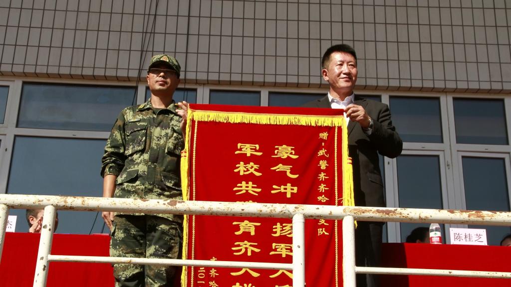最后,陳桂芝代表學(xué)校再次向辛苦奉獻(xiàn)的武警齊齊哈爾支隊的各位領(lǐng)導(dǎo)和同志們表示感謝!并由衷期望2018級每一位新同學(xué),都能夠像可敬可佩的教官們一樣,以奮斗的青春譜寫人生壯美之歌!與新時代的中國一路同行、成長,和新時代的齊大人一起逐夢、前行!