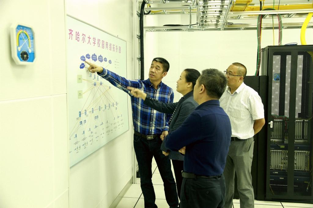 陳桂芝一行先后走訪了我校網(wǎng)絡(luò)信息中心運行部、一卡通部、語言實驗室、遠(yuǎn)程會議室、網(wǎng)絡(luò)多媒體教室、校園網(wǎng)核心機房、數(shù)據(jù)機房等網(wǎng)絡(luò)安全維護(hù)重點部門和場所,并與工作人員進(jìn)行了交流。