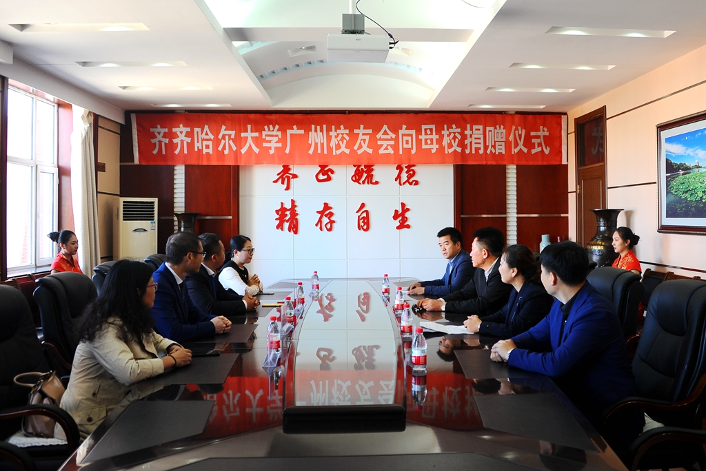 9月9日上午,廣州校友會向母校捐贈儀式在學校辦公樓504會議室舉行。齊齊哈爾大學廣州校友會創(chuàng)會會長李敬民、現(xiàn)任會長劉德權(quán)和秘書長曾曉萍,學校黨委書記蘭景力、校黨委副書記齊宏偉出席儀式。學校辦公室主任王玉國、副主任宋志章參加了儀式。
