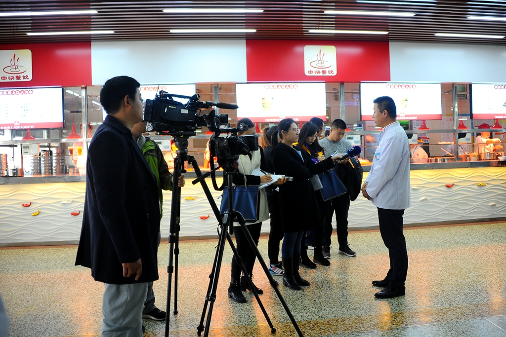 會后,媒體采訪團(tuán)一行先后來到我校中區(qū)圖書館、學(xué)生洗浴中心、第13號學(xué)生公寓,東區(qū)第8號學(xué)生公寓、東區(qū)學(xué)生洗浴中心施工現(xiàn)場、學(xué)生事務(wù)服務(wù)中心以及中區(qū)學(xué)生餐飲中心等場所。重點(diǎn)對宿舍環(huán)境改造、宿舍樓內(nèi)水房、衛(wèi)生間改建,洗浴中心條件改善,食堂菜品質(zhì)量種類、食品衛(wèi)生安全和宿舍樓門禁系統(tǒng)等整改項目進(jìn)行了實地走訪拍攝,并隨機(jī)采訪了校長陳桂芝及部分師生代表。