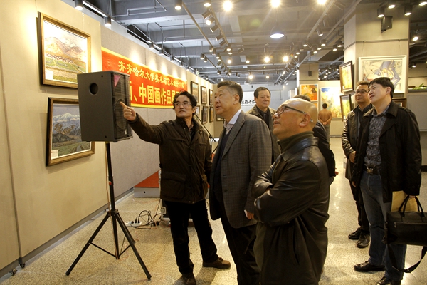 開幕式后,參加開幕式的領導、嘉賓和在場師生觀看了畫展。省教育廳領導對本次畫展的成功舉辦給予肯定,對齊大美術與藝術設計學院教師的文化修養(yǎng)、藝術功力和藝術追求表示贊許。