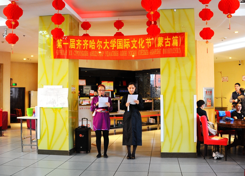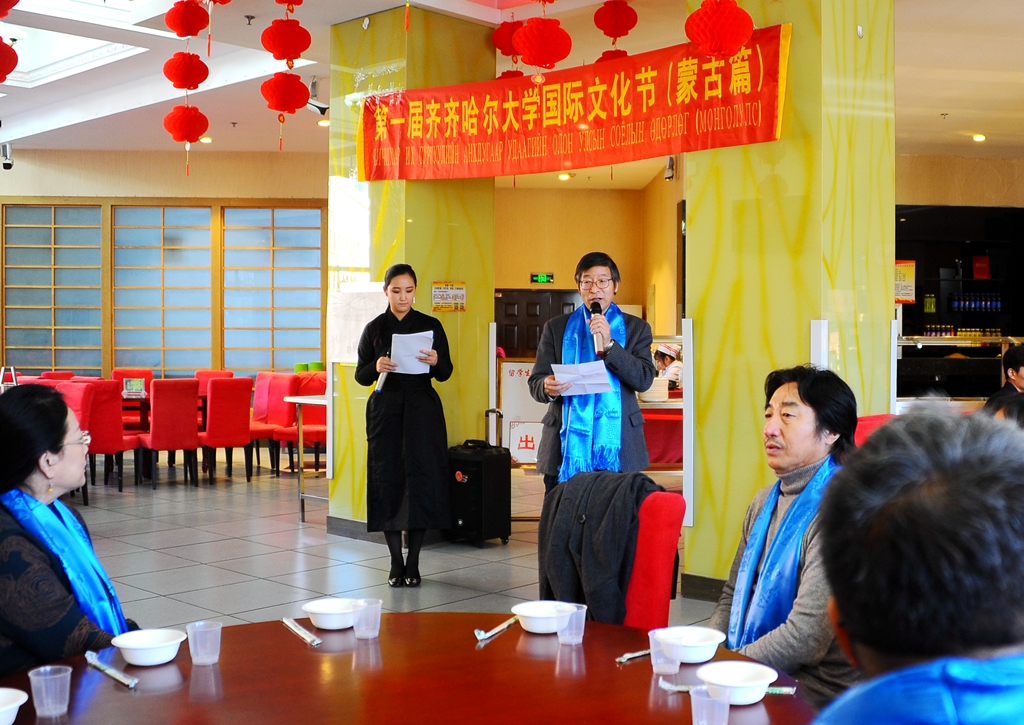 11月20日下午,齊齊哈爾大學(xué)中外學(xué)生文化藝術(shù)節(jié)(蒙古篇)在德潤大廈一樓留學(xué)生餐廳隆重舉行,本次活動由國際交流合作處(國際教育學(xué)院)主辦。副校長張樹軍出席并致辭,國際交流合作處(國際教育學(xué)院)、音樂與舞蹈學(xué)院、研究生部師生代表及留學(xué)生近百人參加了活動。