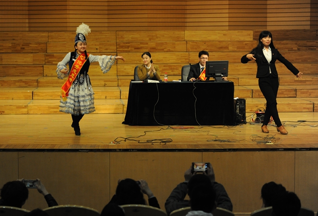 報告會上播放了新疆維吾爾自治區(qū)和阿勒泰地區(qū)西部計劃主題宣傳片。2015年志愿者王美學、2014年留疆志愿者美麗·巴坦、2012年留疆志愿者席玉峰、2015年志愿者何磊、2012年留疆志愿者高一等宣講團成員依次上臺,分別講述了他們在服務地工作、生活的親身經(jīng)歷,與大學生們分享了自己的援疆經(jīng)歷。他們對夢想的堅守和對西部的無私奉獻,深深地打動了在場的每一個人。