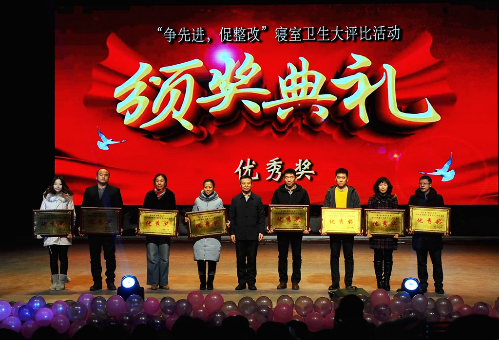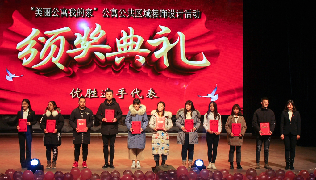 在晚會期間,同時舉行了第五屆“寢室文化節(jié)”系列活動頒獎儀式。以“公寓安全,我是第一關”為主題的門衛(wèi)崗位大練兵活動優(yōu)勝者、“我奉獻,我快樂”為主題的“最美公寓人”獲得者、“美麗公寓我的家”為主題的公寓公共區(qū)域裝飾設計大賽獲獎者及學院優(yōu)秀組織獎代表、“爭先進,促整改”寢室衛(wèi)生大評比獲得優(yōu)秀獎的學院受到表彰,與會領導分別為各獲獎代表頒發(fā)獲獎證書或獎牌。