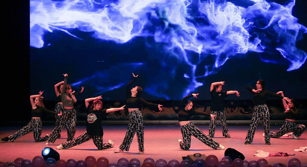 文藝匯演伊始,DBstreet舞團的演員們身著彩色條紋服帶來動感開場舞《西游記》,用炫酷的舞蹈瞬間點燃現(xiàn)場氣氛。