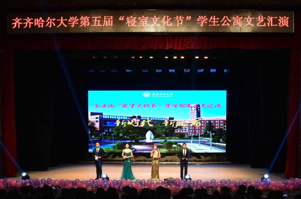 發(fā)布日期:2018-12-03 點擊量:按照《齊哈爾大學第五屆“寢室文化節(jié)”實施方案》安排,11月28日晚6時30分,齊齊哈爾大學第五屆“寢室文化節(jié)”閉幕式暨“新時代,新風尚”學生公寓文藝匯演在文化宮隆重舉行,本次晚會由學生工作部(學生處)主辦,音樂與舞蹈學院承辦。副校長李英杰出席活動,學生工作部(學生處)、宣傳統(tǒng)戰(zhàn)部、組織部、校團委等部門負責人,各學院主管學生工作的副書記副院長以及學工辦主任、輔導員、各公寓管理員、公寓輔導員、外國留學生代表、各級學生組織代表、各學院2018級新生代表以及特地返回母校的畢業(yè)生1400余人共同觀看了晚會,晚會實況通過“目睹直播”在網(wǎng)絡上同步直播。