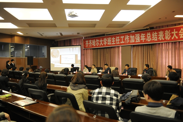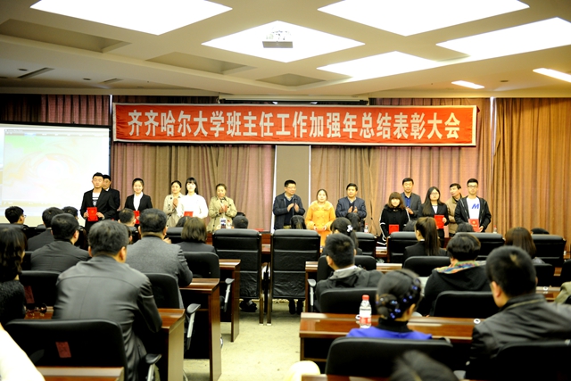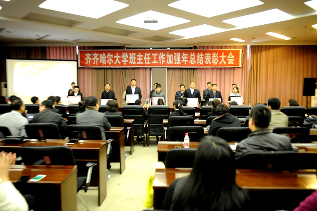 校黨委常委、常務副校長鄭喜群作總結講話。他說,今天,我們在這里隆重集會,對2015年齊齊哈爾大學班主任工作加強年的情況進行總結,對在班主任工作做出突出貢獻、取得突出成績的先進集體、先進個人進行表彰。在此,我謹代表學校向受到表彰的先進集體和先進個人表示熱烈的祝賀!我校一年來在班主任工作方面取得的成績是全校師生員工精誠努力、辛勤付出的結果,在此,我代表學校黨政領導班子向你們表示崇高的敬意和衷心的感謝!