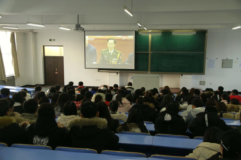 校團(tuán)委組織校院兩級學(xué)生組織中的骨干在11號教學(xué)樓階梯201教室集中收看了大會(huì)直播。