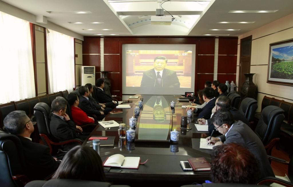校黨委理論學(xué)習(xí)中心組成員在辦公樓504會(huì)議室全程收看了大會(huì)直播。