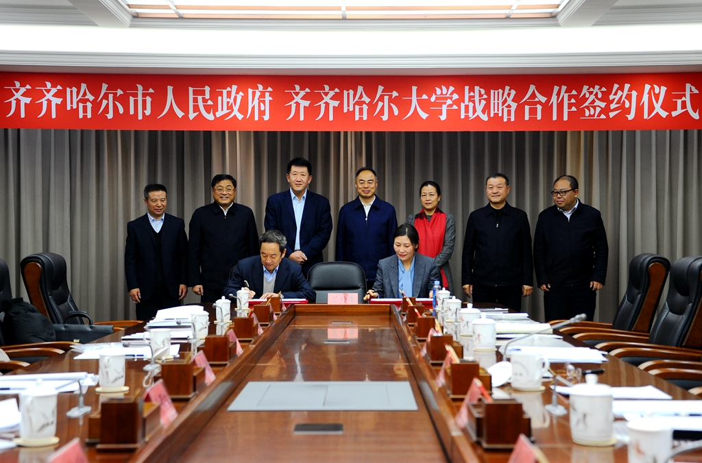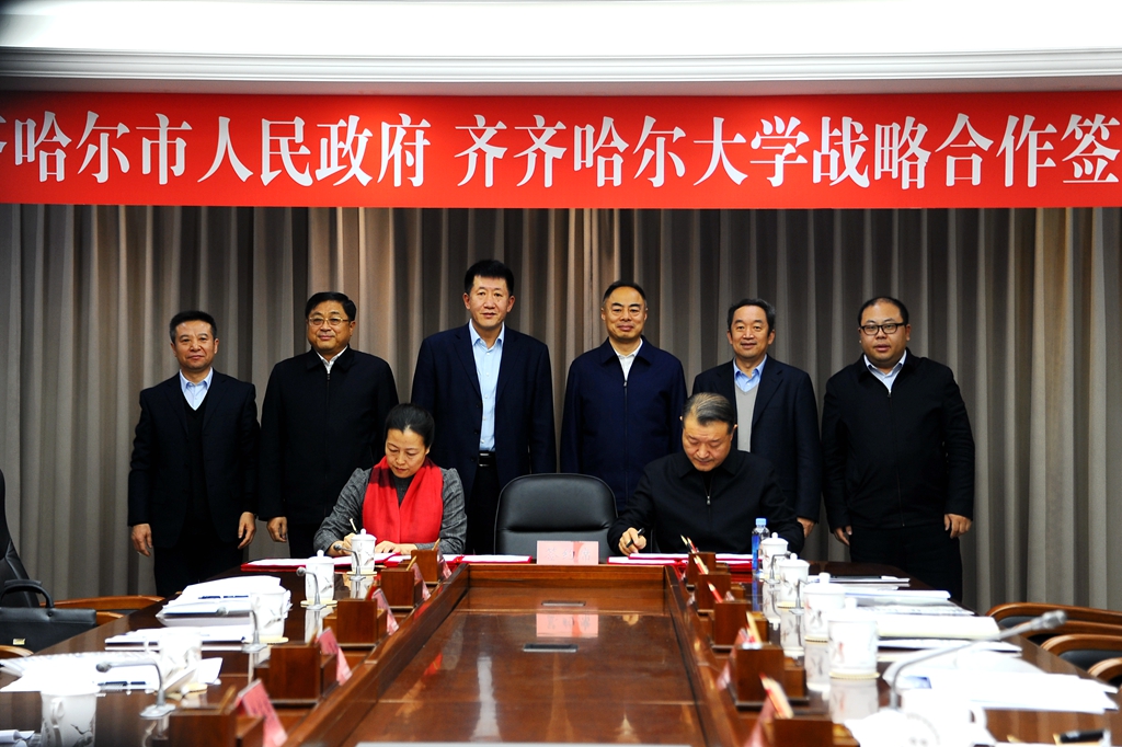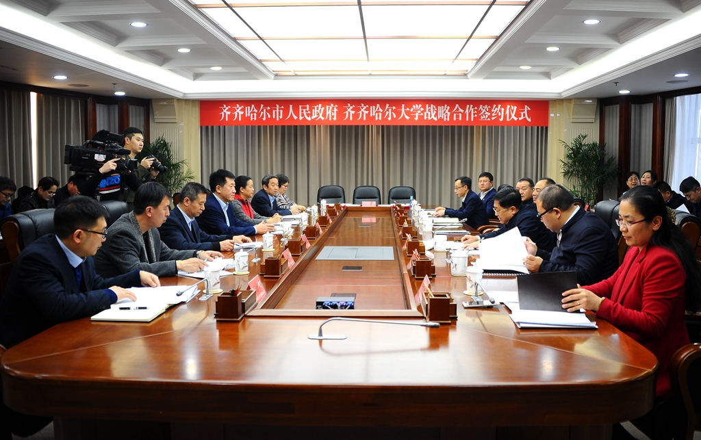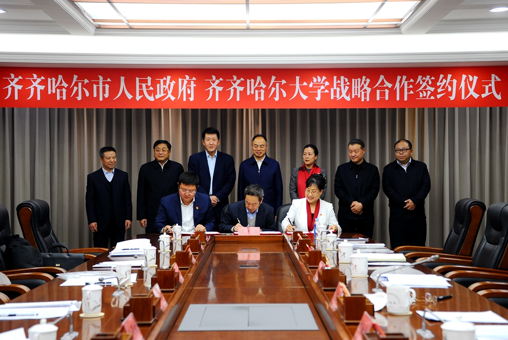 12月20日下午,齊齊哈爾市人民政府和齊齊哈爾大學(xué)戰(zhàn)略合作簽約儀式在市黨政機(jī)關(guān)辦公中心舉行,省人大常委會副主任、齊齊哈爾市委書記孫珅,市委常委、龍江縣委書記王兆憲,副市長姚卿,市政府副秘書長劉海濤,我校黨委書記蘭景力、校長陳桂芝、副校長李英杰、副校長呂厚均出席簽約儀式。王兆憲主持簽約儀式。