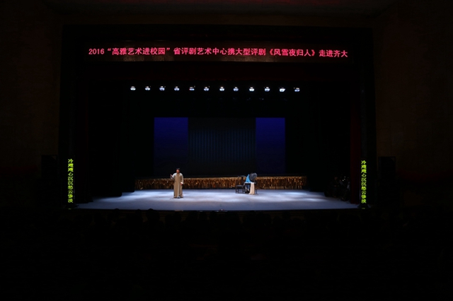 5月5日,2016“高雅藝術(shù)進(jìn)校園”省評劇藝術(shù)中心攜大型評劇《風(fēng)雪夜歸人》走進(jìn)齊齊哈爾大學(xué)。我校黨委書記李海紅、黨委宣傳部副部長何強(qiáng)和1300余名師生共同欣賞了黑龍江省評劇藝術(shù)中心的藝術(shù)家們帶來的大型評劇《風(fēng)雪夜歸人》。本次活動(dòng)由我校黨委宣傳部、學(xué)生工作部(處)共同組織。