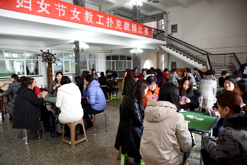 在撲克游藝活動現(xiàn)場,陳桂芝與女教職工們親切交談,她囑咐女同胞們要關(guān)愛自己,勞逸結(jié)合,愉快生活,愉快工作,以校為家,與全校教職工一道努力共建和諧幸福美麗的齊齊哈爾大學(xué)。