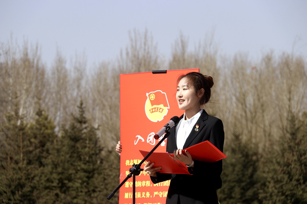 全體團(tuán)員在校學(xué)生會(huì)副主席張賽同學(xué)的帶領(lǐng)下,重溫了入團(tuán)誓詞。