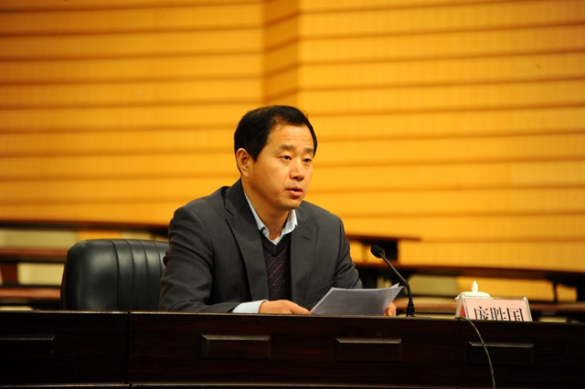 省委高校工委組織部(干部處)副部長(zhǎng)龐勝?lài)?guó)代表省委考核組對(duì)2015年度校級(jí)領(lǐng)導(dǎo)班子考核民主測(cè)評(píng)工作的目的、意義、程序、要求進(jìn)行了說(shuō)明和部署。