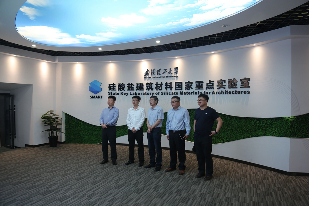 張樹軍一行首先來到硅酸鹽建筑材料國家重點實驗室進行參觀走訪,該實驗室主任陳偉做了詳細講解。
