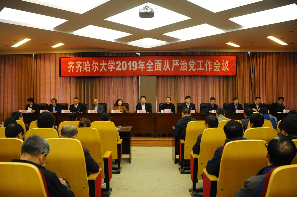4月23日下午,齊齊哈爾大學(xué)2019年全面從嚴(yán)治黨工作會(huì)議在德潤大廈四樓會(huì)議室召開。校黨委常委蘭景力、陳桂芝、齊宏偉、張文治、王剛、李英杰、姜國慶、張樹軍、呂厚均、陶佰睿、王曉梅、馬文輝出席會(huì)議,全校副處級(jí)以上干部和各二級(jí)黨委、直屬黨支部紀(jì)檢委員、學(xué)校黨風(fēng)廉政建設(shè)監(jiān)督員、部分科級(jí)干部參加了會(huì)議。會(huì)議由校黨委副書記、校長陳桂芝主持。
