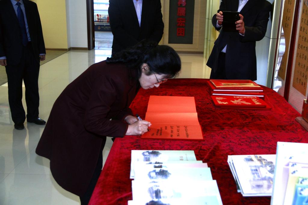 在校史館,聽過講解員對學校六十多年辦學歷程的詳細講解后,辛寶忠書記與邊奎順校長對齊大人多年扎根邊疆、執(zhí)鞭杏壇、弘文勵教、改革奮進的辦學歷程表示贊賞,并先后為學校題字留念。
