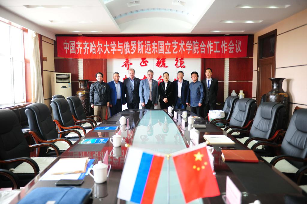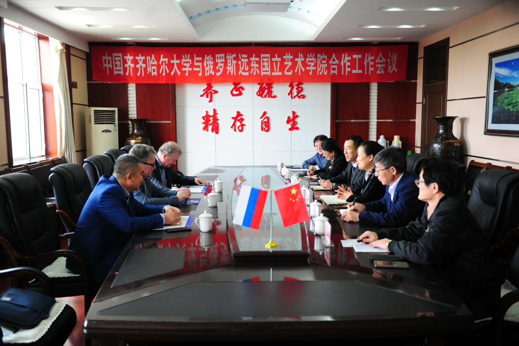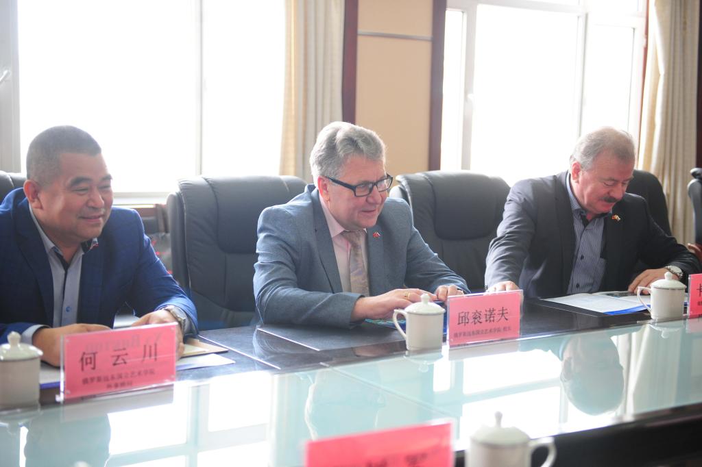 安德烈?酋谷諾夫院長對齊齊哈爾大學(xué)的熱情接待表示感謝。他表示,這是第一次來到齊齊哈爾大學(xué),非常榮幸受邀參加第十屆中俄大學(xué)生文化藝術(shù)節(jié)。他從辦學(xué)歷史、學(xué)科設(shè)置、科研合作等方面介紹了俄羅斯遠(yuǎn)東國立藝術(shù)學(xué)院,并就本次藝術(shù)節(jié)期間的文化藝術(shù)交流活動和兩校間可能展開的合作交流與齊齊哈爾大學(xué)領(lǐng)導(dǎo)交換了意見。