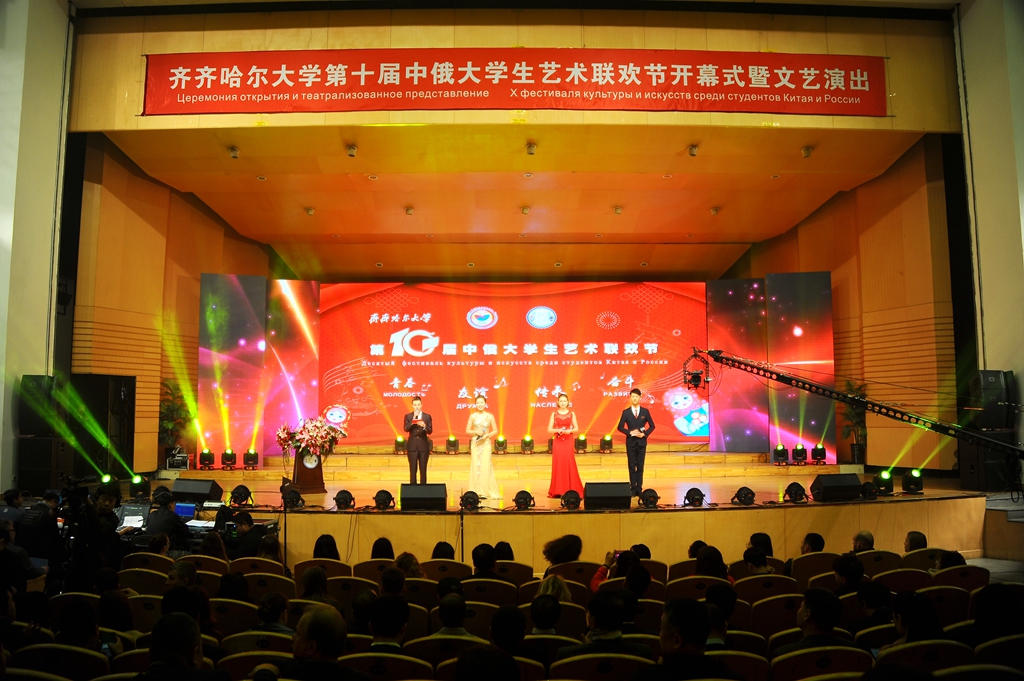 校長陳桂芝在致辭中指出,多年來,伴隨著國家和黑龍江省與俄羅斯各領(lǐng)域的友好深度合作,我校國際交流合作各項工作也取得了長足進(jìn)步。十年前,教育部批準(zhǔn)在我校設(shè)立了“中俄大學(xué)生藝術(shù)交流基地”,在國家“中俄語言年”活動框架下舉辦了首屆中俄大學(xué)生藝術(shù)聯(lián)歡節(jié)。在中俄兩國同仁的傾情奉獻(xiàn)下,在教育部、省教育廳、齊齊哈爾市委市政府的大力支持下,“齊齊哈爾大學(xué)中俄大學(xué)生藝術(shù)交流基地”已發(fā)展成為傳播中俄兩國人民的深情厚誼的重要舞臺。在今后的發(fā)展中,希望中俄兩國學(xué)子堅持“開放包容、互學(xué)互鑒、互利共贏”的理念,借助齊齊哈爾大學(xué)中俄大學(xué)生藝術(shù)交流基地這一平臺,展示中俄兩國文化,展現(xiàn)兩國青年人的青春風(fēng)采,促進(jìn)中俄青年友好交流,加強(qiáng)了解,增進(jìn)友誼,為兩國青年架起一座溝通的橋梁,為中俄兩國的友好譜寫新篇章!