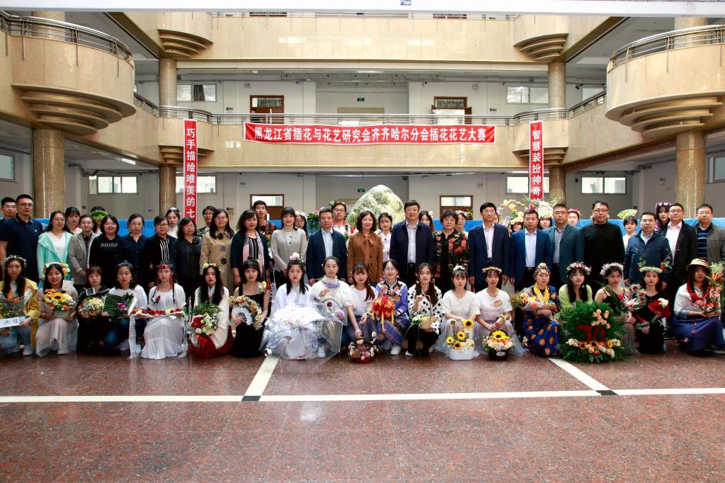 智慧裝扮神奇的花卉藝術(shù)、巧手描繪唯美的七彩畫卷。為進一步推進齊齊哈爾地區(qū)插花與花藝研究,促進本地區(qū)各相關(guān)院校、企事業(yè)單位相關(guān)人員經(jīng)驗與技術(shù)交流,5月22日下午,黑龍江省插花花藝研究會齊齊哈爾分會第九屆插花花藝大賽在我校西主陽光大廳舉行。