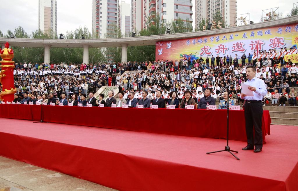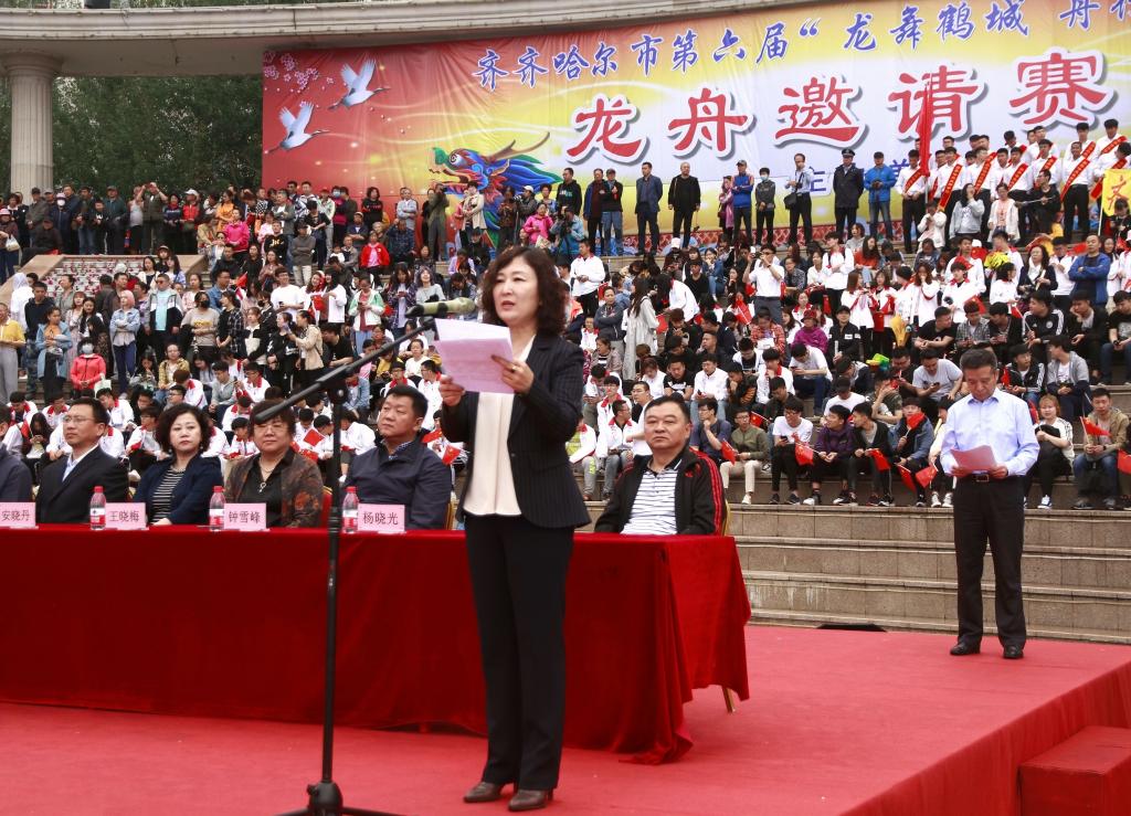 齊宏偉指出,賽龍舟是我國具有悠久歷史、深受人民喜愛的民俗體育活動,體現(xiàn)了中華民族同舟共濟、團結(jié)拼搏、奮勇爭先的精神。為弘揚中華優(yōu)秀傳統(tǒng)文化,發(fā)揮大學(xué)文化傳承創(chuàng)新作用,我校與齊齊哈爾市已經(jīng)成功合作舉辦了五屆“龍舞鶴城 舟行齊大”龍舟邀請賽。這項活動有力推動了文化強市建設(shè),豐富了齊市人民的精神文化生活,現(xiàn)已成為魅力鶴城一道亮麗的城市文化風(fēng)景線和校地合作共建的文化品牌。希望通過本屆龍舟邀請賽的舉辦,能夠進(jìn)一步激發(fā)起鶴城人民和齊大師生“熱愛祖國、建設(shè)家鄉(xiāng)”的熱情,為現(xiàn)代化新龍江新鶴城建設(shè)而不懈奮斗,以優(yōu)異成績迎接新中國成立70周年!最后,她預(yù)祝齊齊哈爾市第六屆“龍舞鶴城 舟行齊大”龍舟邀請賽取得圓滿成功!