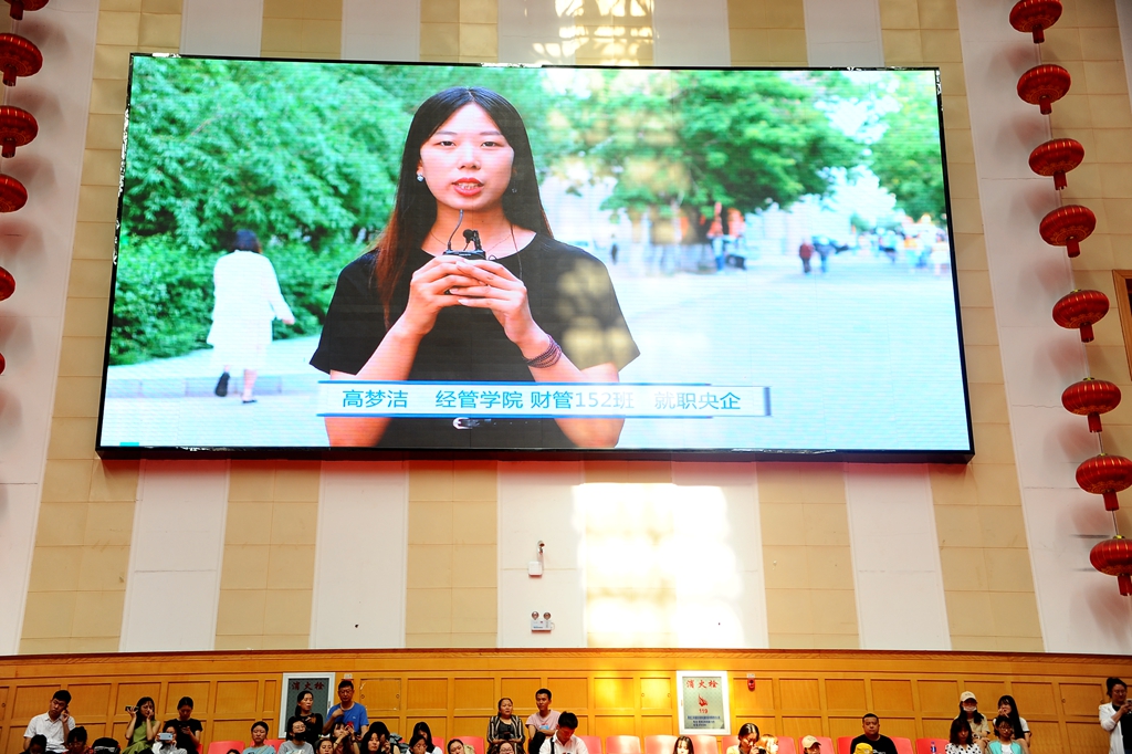 在畢業(yè)典禮正式開(kāi)始前,播放了校黨委宣傳統(tǒng)戰(zhàn)部精心制作的2019屆畢業(yè)生畢業(yè)感言視頻《感恩齊大 放飛夢(mèng)想》,共錄制了27位2019屆優(yōu)秀本科生、研究生、留學(xué)生代表對(duì)大學(xué)生活的深情回憶,對(duì)母校的無(wú)限眷戀,對(duì)未來(lái)的美好暢想。(點(diǎn)擊觀看《感恩齊大 放飛夢(mèng)想》)
