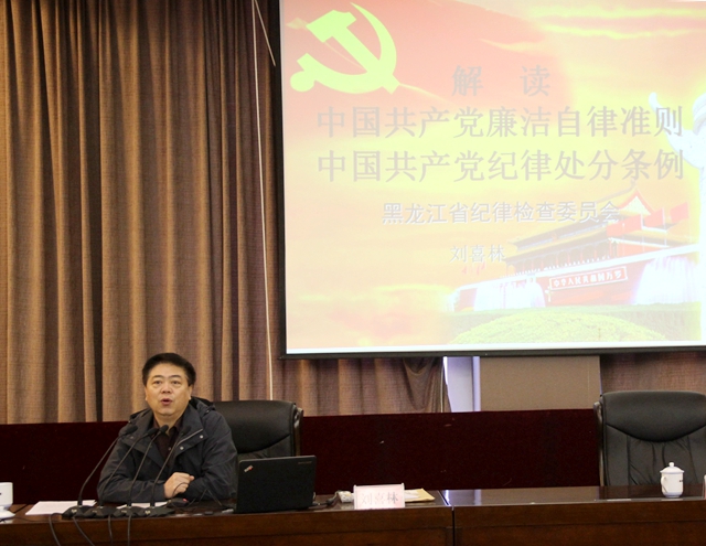 3月19日上午,省紀委案件監(jiān)督管理室主任劉喜林以《解讀< 中國共產(chǎn)黨廉潔自律準則>、< 中國共產(chǎn)黨紀律處分條例>》為題作了專題輔導報告。他說,新學期一開學,齊大黨委就組織處級以上干部集中培訓,充分體現(xiàn)了學校黨委、紀委對學習《準則》和《條例》的高度重視,對貫徹落實《準則》和《條例》的充分自覺。在講座中,他理論聯(lián)系實際,以案明紀,樹立高線,劃出底線,集中闡述了五個方面的內(nèi)容:一是喚醒黨章意識,維護黨章權(quán)威,二是依規(guī)治黨和以德治黨相結(jié)合,堅持自律和他律相結(jié)合,讓德治與法治相得益彰;三是堅持紀嚴于法,實現(xiàn)法紀分開,把規(guī)矩和紀律挺在法律的前面;四是《準則》面向全黨,發(fā)出道德宣示;五是明確紀律,劃出行為底線。他指出,全面從嚴治黨永遠在路上,強化監(jiān)督只有進行時。廉潔自律準則是執(zhí)政黨的道德宣示和行動的高標準,黨紀處分條例是管黨治黨的尺子和黨員的行為底線?!稖蕜t》和《條例》是加強黨內(nèi)監(jiān)督的重要制度安排,為黨內(nèi)監(jiān)督和群眾監(jiān)督明確了對照的標準、提供了衡量的尺子,使黨員干部和廣大群眾的監(jiān)督有規(guī)可依、有據(jù)可循。打鐵還需自身硬。黨員干部要恪守政治紀律、組織紀律、廉潔紀律、群眾紀律、工作紀律、生活紀律,模范遵守《準則》和《條例》,以實際行動為黨旗增輝,為辦好人民滿意的大學做出新貢獻。
