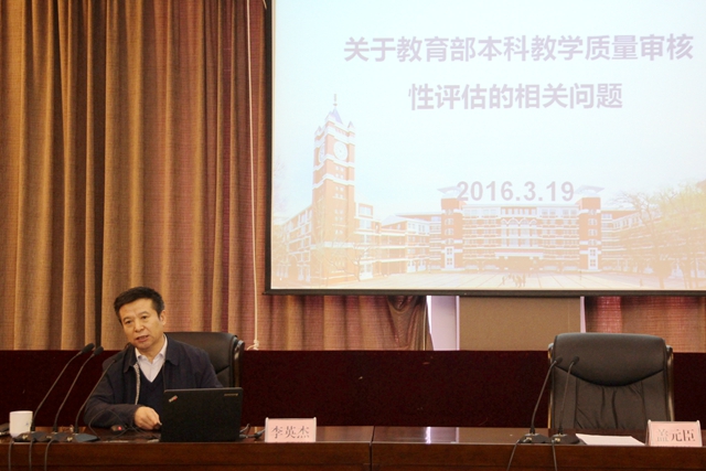 3月19日上午,校黨委常委、副校長李英杰作了題為《關(guān)于教育部本科教學質(zhì)量審核性評估的相關(guān)問題》的專題輔導報告。他指出,重視質(zhì)量是一個時代的命題。我們要堅持走內(nèi)涵式發(fā)展道路,以學生發(fā)展為本位,回歸“真實”的教育教學活動。他集中闡述了審核性評估的時代背景、概念、程序、范圍以及本次審核性評估與以往評估的不同,強調(diào)要整合資源,大力加強師資隊伍建設(shè)和質(zhì)量保障體系建設(shè),積極學習取經(jīng),邀請專家來校講學,進一步規(guī)范教育教學行為,堅定自信,夯實基礎(chǔ),提升質(zhì)量,做好年度自評工作,以精益求精、追求卓越的精神全面做好審核性評估各項工作,為提升人才培養(yǎng)質(zhì)量、促進高水平大學建設(shè)貢獻力量。