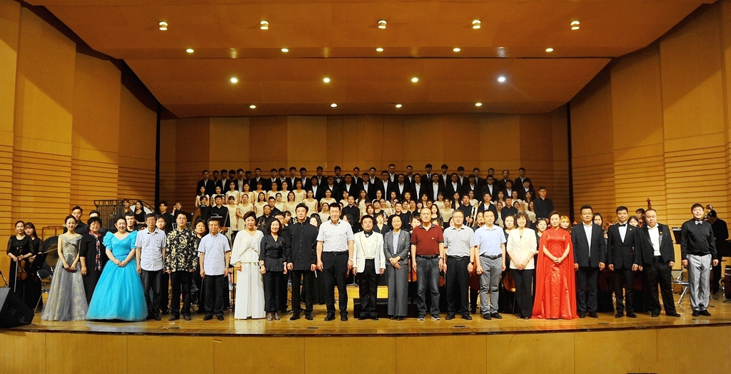 最后,全場起立,演出在合唱《沒有共產(chǎn)黨就沒有新中國》的雄渾旋律中圓滿結(jié)束。