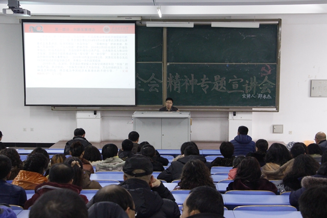 11月25日至12月9日,宣講團將在全校范圍內(nèi)集中開展全會精神專題宣講活動。11月25日,校十八屆五中全會精神宣講團成員、黨委副書記蓋元臣教授作了題為《五大發(fā)展理念的歷史邏輯與現(xiàn)實意義》的首場宣講報告。