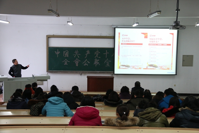 12月2日,十八屆五中全會精神宣講活動繼續(xù)深入推進。宣講團成員蓋元臣、鄭永杰、楊淳、伊全勝、于春梅、吳慶華等分別在學校六個分會場同時為文學與歷史文化學院、哲學與法學學院、化學與化學工程學院、現(xiàn)代教育技術中心、后勤管理處、外國語學院、理學院、建筑與土木工程學院、國際教育學院、教育與傳媒學院、公共外語教研部等十余個學院、職能部門的師生做了專題宣講報告。