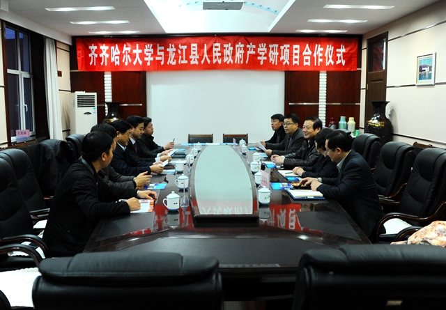 12月4日下午,龍江縣委書記王兆憲、縣長(zhǎng)劉雁冬等縣黨政領(lǐng)導(dǎo)以及縣有關(guān)部門領(lǐng)導(dǎo)一行來(lái)訪我校,考察調(diào)研學(xué)??萍紕?chuàng)新與科技成果轉(zhuǎn)化工作,并與我校就有關(guān)科技成果轉(zhuǎn)化項(xiàng)目簽訂產(chǎn)學(xué)研合作協(xié)議。