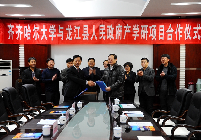 會(huì)上,校黨委常委、副校長(zhǎng)鄧啟剛同龍江縣縣長(zhǎng)劉雁冬共同簽訂了我校與龍江縣人民政府產(chǎn)學(xué)研合作協(xié)議。