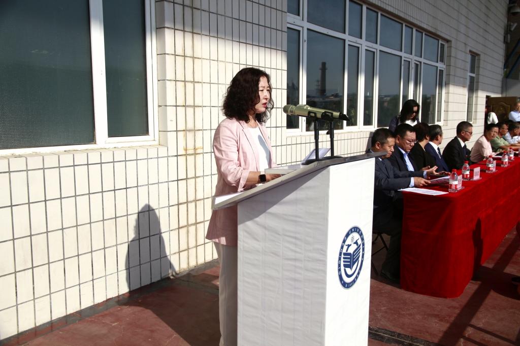 校長陳桂芝在大會上講話。她代表學校全體師生員工,向2019級全體新同學的到來表示熱烈的歡迎!向培養(yǎng)、支持他們一路走來的老師家長們致以崇高的敬意!向承訓部隊武警齊齊哈爾支隊的各位同志致以衷心的感謝!她說,齊齊哈爾大學是一所歷史悠久的大學;是一所與時俱進的大學;是一所擁有夢想的大學。你們的到來,為齊齊哈爾大學慶祝新中國成立70周年華誕增加了更多的青春元素,也為學校事業(yè)發(fā)展建設注入了更多的新鮮動力。習近平總書記說過,每一代人有每一代人的長征路,每一代人都要走好自己的長征路。今天,你們由五湖四海匯聚到龍江鶴城,開啟了人生道路上的新征程?!吧琊⒔?jīng)綸地,風云際會期”。我相信,你們在齊大一定能夠成就美好青春。