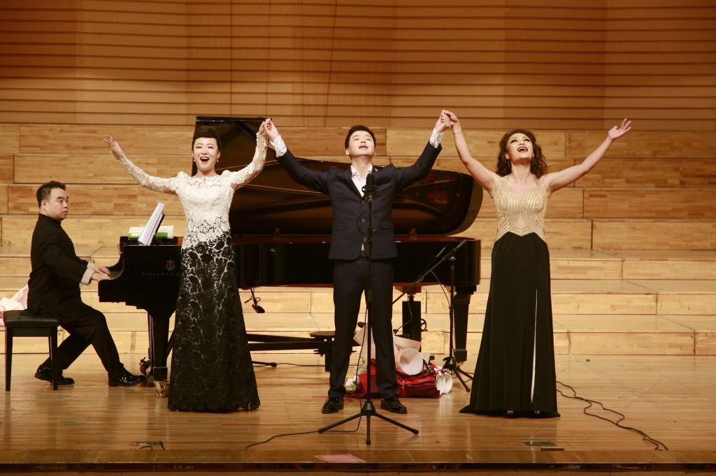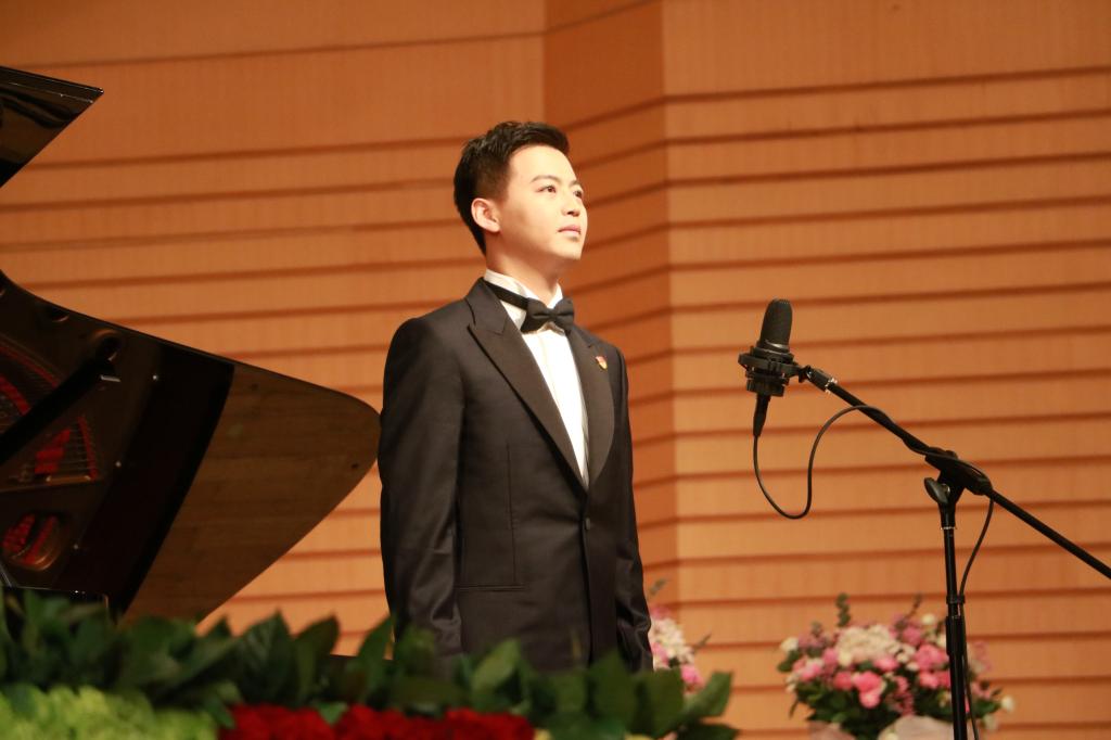 演奏者高超的聲樂演奏技巧和對(duì)聲樂作品準(zhǔn)確的把握能力贏得了在場(chǎng)所有人的熱烈掌聲,在現(xiàn)場(chǎng)觀眾的強(qiáng)烈要求下,鄧重博又飽含深情地為大家演唱一首《我的深情為你守候》,表達(dá)了他對(duì)學(xué)校、老師以及社會(huì)各界朋友關(guān)心支持的感恩之情。整場(chǎng)音樂會(huì)在由鄧重博、陳丹丹、吳俐智共同演唱的《我愛你,中國(guó)》悠揚(yáng)的歌聲中落下帷幕。