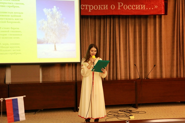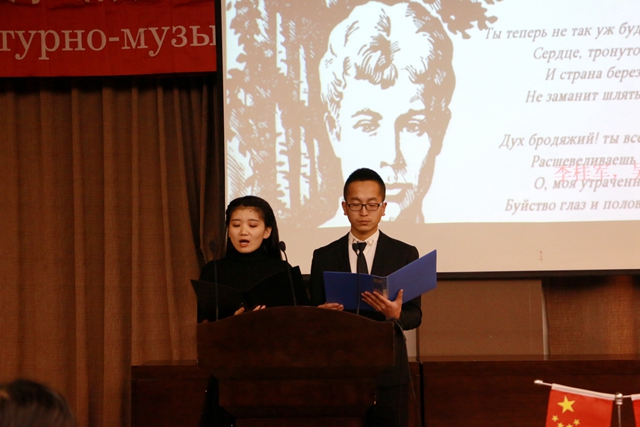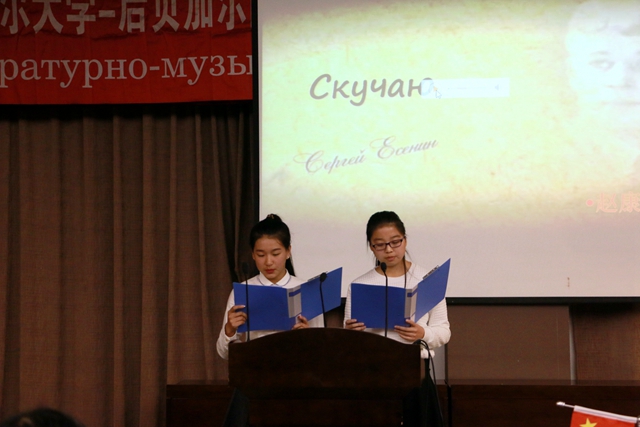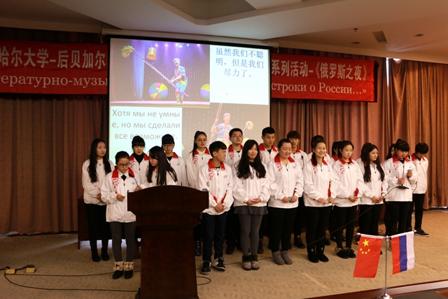 14日至16日,為期三天的《俄羅斯之夜》活動(dòng)中,兩校師生共同舉辦了《俄羅斯詩歌、散文朗誦比賽》,《慶祝俄羅斯偉大詩人葉賽寧誕辰120周年文學(xué)會(huì)客廳》,《俄羅斯經(jīng)典歌曲比賽》,《俄羅斯短劇展演》,以及主題為“俄羅斯、祖國(guó)、勝利”的慶祝偉大俄羅斯衛(wèi)國(guó)戰(zhàn)爭(zhēng)勝利70周年《文學(xué)音樂會(huì)》和俄羅斯國(guó)情知識(shí)競(jìng)賽等系列活動(dòng)。
