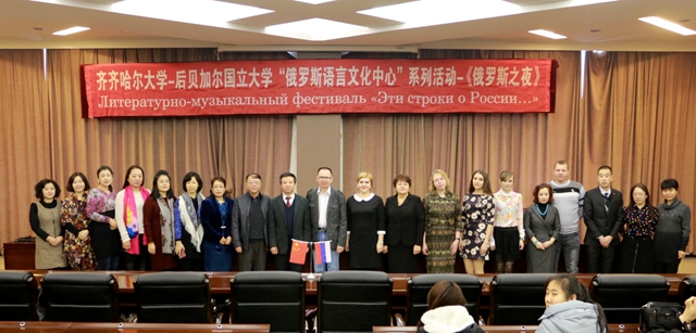 在我校國(guó)際交流合作處、現(xiàn)代教育技術(shù)中心、教務(wù)處、外國(guó)語學(xué)院俄語系以及俄羅斯后貝加爾國(guó)立大學(xué)有關(guān)方面的精心籌備與共同努力下,12月14日至16日,慶祝齊齊哈爾大學(xué)與俄羅斯后貝加爾國(guó)立大學(xué)“俄羅斯語言文化中心”成立兩周年暨《俄羅斯之夜》系列文化交流活動(dòng)在我校舉行。