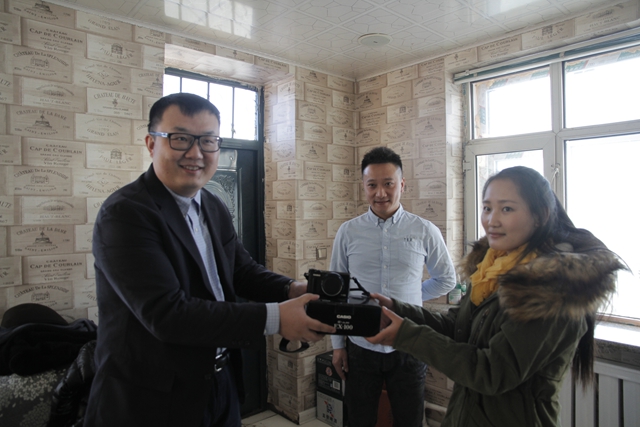 哈爾濱市匯豐照像器材有限公司劉凱先生與卡西歐公司劉鵬先生為孩子們送上卡西歐EX100相機(jī)。