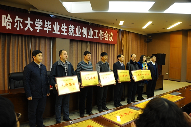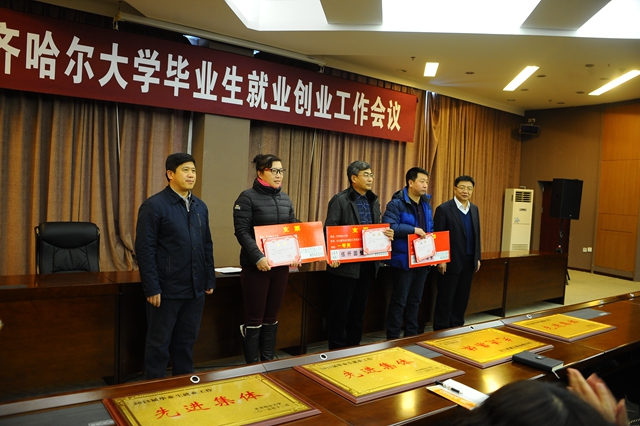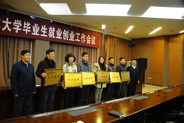 會上,學校就業(yè)指導處處長楊國志宣讀了《2015屆畢業(yè)生就業(yè)工作先進集體、先進個人表彰獎勵名單》。出席會議的校領導為獲獎集體和個人頒發(fā)了獎牌和證書。