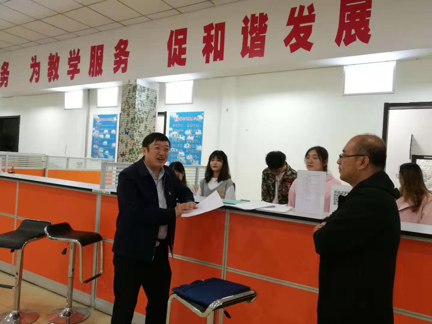 校主題教育領(lǐng)導(dǎo)小組副組長兼辦公室主任、黨委副書記張文治先后來到學(xué)生工作部(處)、校團(tuán)委、招生就業(yè)處等部門與相關(guān)部門領(lǐng)導(dǎo)、老師及窗口工作人員進(jìn)行了座談交流,并到招生就業(yè)學(xué)生綜合服務(wù)大廳、大學(xué)生創(chuàng)業(yè)園進(jìn)行了實(shí)地踏查,認(rèn)真聽取了相關(guān)部門、單位工作人員對學(xué)校教育管理服務(wù)體系一體化工作的看法和意見。